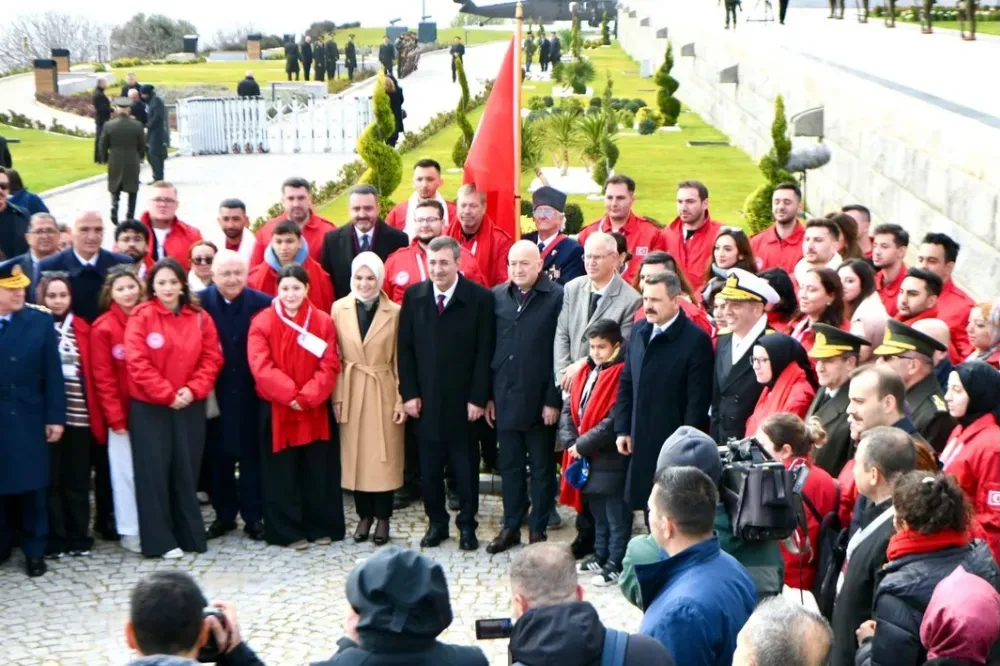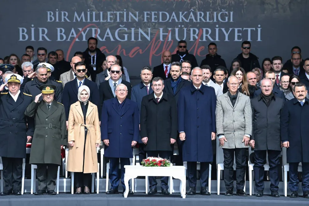 Cumhurbaşkanı Yardımcısı Cevdet Yılmaz ise 18 Mart Deniz Zaferi töreninde yaptığı konuşmada, " 18 Mart Şehitleri Anma Günü ve Çanakkale Deniz Zaferi Töreni vesilesiyle bu şanlı zaferin kazanıldığı topraklarda sizlerle bir arada olmaktan büyük memnuniyet duyuyorum. Çanakkale Deniz Zaferimizin 111'inci sene-i devriyesinde vatanımıza, bayrağımıza ve istikbalimize sahip çıkarken şehit düşen tüm kahramanlarımıza Allah'tan rahmet diliyorum. Gazilerimize sıhhat ve afiyet temenni ediyorum. İstiklal şairimiz Mehmet Akif'in diliyle bir kez daha sesleniyoruz: 'Ey şehîd oğlu şehîd, isteme benden makber, Sana âgûşunu açmış duruyor Peygamber.' Bugün Gelibolu Yarımadası'nın her karışına sinmiş fedakârlığın, milletimizin istiklal iradesinin ve tarih boyunca süregelen vatan sevgisinin hatırası önünde saygıyla eğiliyoruz. Gelibolu Yarımadası'nın her karışına sinmiş bu hatıra, ardına bakmadan yollara düşenlerin, hayatlarının baharında cephelere koşanların, bu vatanın kaderi söz konusu olduğunda kendi kaderini tereddütsüz biçimde ortaya koyanların hatırasıdır. Anadolu'nun dört bir yanından gelen gençler, köylerinden, kasabalarından, şehirlerinden ayrılıp Gelibolu sırtlarında aynı safta buluşmuş; milletimizin istiklal iradesini omuz omuza savunmuştur. Bugün de aynı ruhla iç cephemizi güçlendiriyor, birliğimizi ve kardeşliğimizi yüceltiyoruz” diye konuştu. Konuşmaların ardından şehitler için Kur'an-ı Kerim okundu, dualar edildi. Şehitlik Defteri imzalandıktan sonra da temsili şehit mezarlıklarına karanfil bırakıldı. Deniz Kuvvetleri Komutanlığı unsurları Çanakkale Boğazı'nda geçit töreni gerçekleştirdi. Şehitler Abidesi'ndeki tören SOLOTÜRK'ün nefes kesen gösterisiyle sona erdi.Törene, Milli Savunma Bakanı Yaşar Güler, Kültür ve Turizm Bakanı Mehmet Nuri Ersoy, Aile ve Sosyal Hizmetler Bakanı Mahinur Özdemir Göktaş, Genelkurmay Başkanı Orgeneral Selçuk Bayraktaroğlu, Deniz Kuvvetleri Komutanı Oramiral Ercüment Tatlıoğlu, Hava Kuvvetleri Komutanı Orgeneral Ziya Cemal Kadıoğlu, Kara Kuvvetleri Komutanı Orgeneral Metin Tokel, Donanma Komutanı Oramiral Kadir Yıldız ve 1'inci Ordu Komutanı Orgeneral Bahtiyar Ersay, Çanakkale Valisi Ömer Toraman, Çanakkale Boğaz ve Garnizon Komutanı Tuğamiral Mustafa Biçen, milletvekilleri, Çanakkale Savaşları Gelibolu Tarihi Alan Başkanı İsmail Kaşdemir çok sayıda şehit yakını, gazi ve gazi yakınları katıldı.